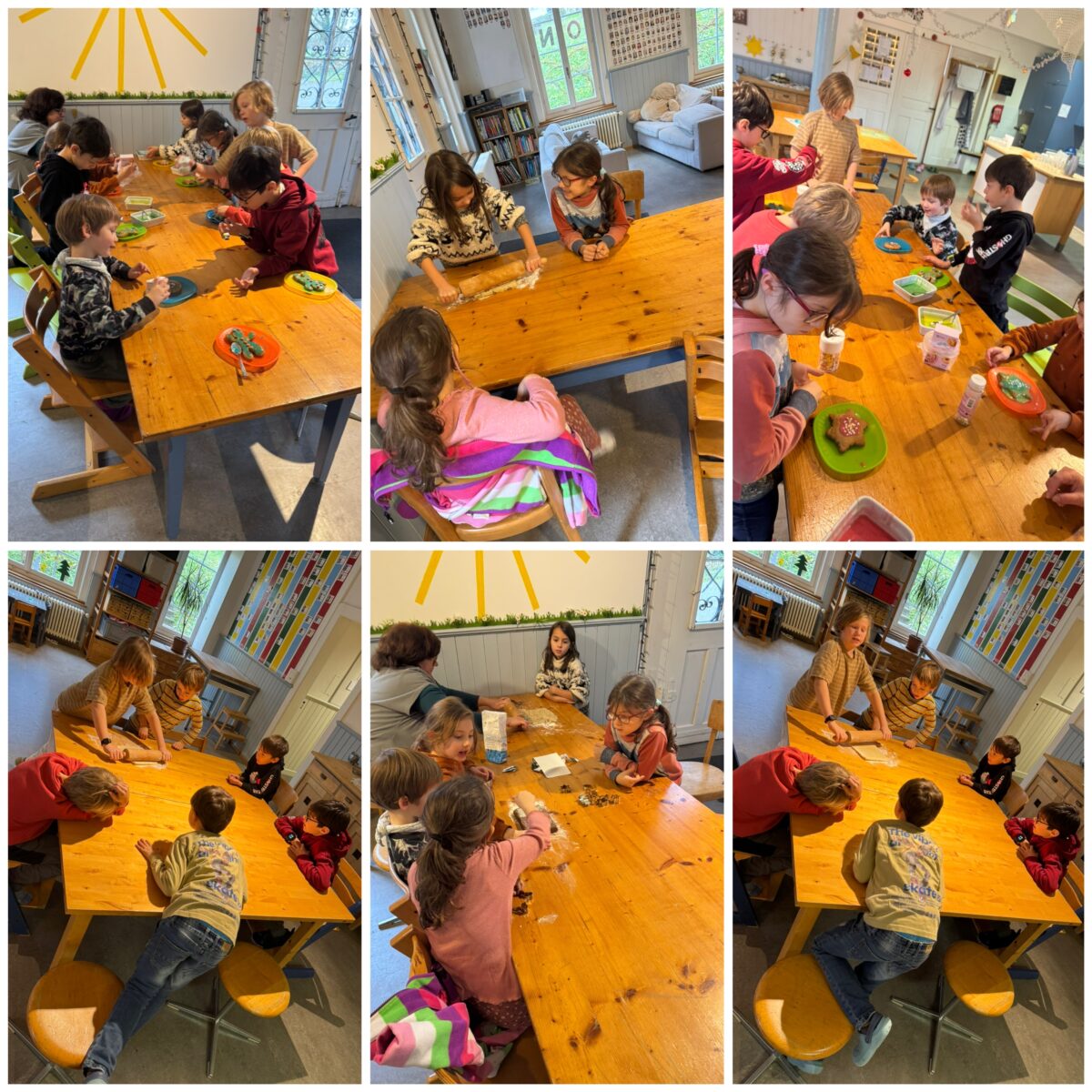 Beim Kekse backen gibt es bei uns Kinder viel zu lachen wir stechen sie mit Formen aus und machen bunte Streusel drauf wir leben froh und leben munter und bestreuen die Kekse immer bunter 😉